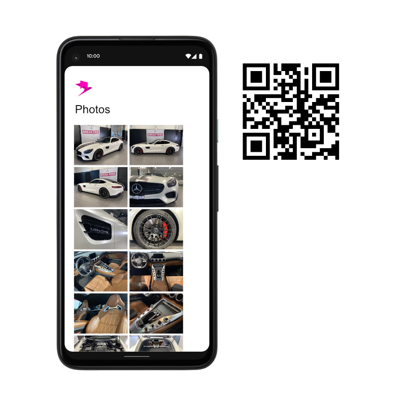 Skriv ut QR koder som tar kunden till en särskild fordonssida med utvalda bilder och info från er. Fräsch och modern presentation där kunden själv kan interagera med försäljningsobjekten i er fordonshall genom att skanna QR kod med sin vanliga mobilkamera.